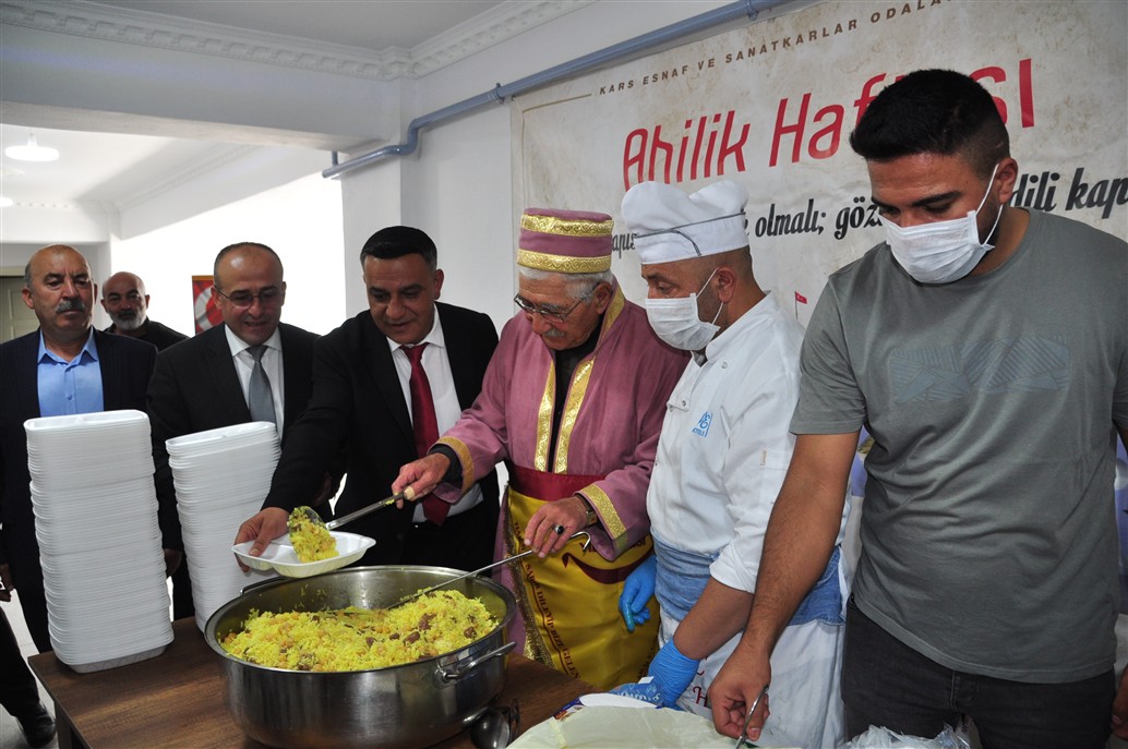 "Ahilik kültür ve felsefesinde, toplumun refahı ve sosyal sorumluluk önemli ve öncelikli bir ilke olarak kabul edilmiş, bu bağlamda yeterli ve kaliteli mal ve hizmet üretimi teşvik edilmiştir." diyen Kars Valisi Ziya Polat ise, Bu yıl 38’İncisini kutladığımız Ahilik Haftası’nda sizlerle bir arada olmaktan duyduğum memnuniyeti belirtmek istiyorum. Anadolu’muza özgü bir kurum olan Ahilik kurumunu Ahi Evran-ı Veli’nin öncülüğünde hayata geçiren Aziz Milletimiz, o dönemde birlik, beraberlik, kardeşlik, dostluk, hoşgörü ve insan sevgisini esas alan bir anlayışla, bir çatı altında birlikte yaşayabilmeyi, iş ve meslek sahibi olabilmeyi öğretmişlerdir. Belirttiğim ve günümüzde uygar dediğimiz dünya ülkelerinin uygulamaya ve hâkim kılmaya çalıştıkları bu insani değerler, daha 13’üncü yüzyılda Anadolu Türkleri tarafından “Ahilik Vizyonu” olarak uygulanmış ve böylece diğer ülkelere örnek olmuştur. Ahi Evran-ı Veli’nin “Elini, sofranı, kapını açık tut. Gözünü, dilini, belini bağlı tut” özlü sözünün, sadece esnaflarımızın değil aslında herkesin özümsemesi ve hayat felsefi olarak benimsemesi gereken bir öğüt niteliğindedir. Ahilik kültürü ve felsefesi, insanı esas alan, insanlar arasındaki ticari ve toplumsal ilişkilerde; dürüstlük, güvenirlilik, iş ve meslek ahlakına saygı, hak ve hukuka riayet etme, saygılı, şefkatli, cömert ve güler yüzlü olma ilkelerini esas almıştır. Ahilik kültür ve felsefesinde, toplumun refahı ve sosyal sorumluluk önemli ve öncelikli bir ilke olarak kabul edilmiş, bu bağlamda yeterli ve kaliteli mal ve hizmet üretimi teşvik edilmiştir. Ayrıca; mal ve hizmet üretiminde kaliteyi yükseltmede, üretici ve sanatkârlar arasında dayanışma, iş birliği ve etkileşimi artırmada önemli bir motivasyon kaynağı olmuştur. Ahilik teşkilatı; 8 asırdır ahilik felsefesini özümseyerek yaşayan esnaflar yetiştirmiş, mesleğinde ehil olmayanlara asla ahilik belgesi vermemiş, esnaf ve sanatkârlar arasında çıraklık, kalfalık ve ustalık hiyerarşisi oluşturmuş ve çalışma hayatının yanı sıra sosyal hayatın gelişmesine de büyük katkılar sağlamıştır.