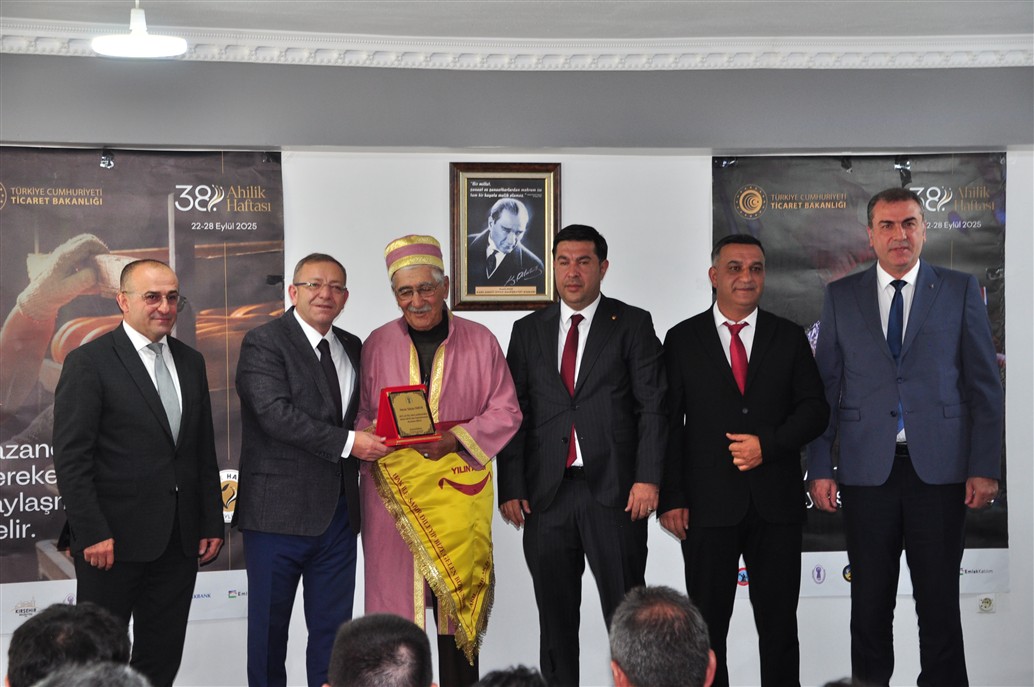 Konuşmaların ardından ilin çırağı seçilen Sedef Evren, ilin kalfası seçilen Umutcan Taşkıran ve ilin ahisi seçine Yalçın Omur'a protokol üyeleri tarafından kuşakları bağlanarak plaketleri verildi.