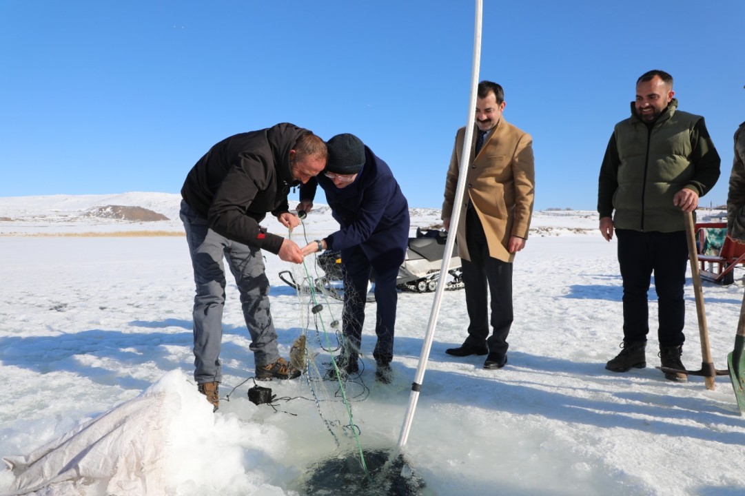 Çıldır Gölü Kristal Buz Festivali öncesinde, Vali Mehmet Fatih Çiçekli, Kaymakam Barış Aytürk ve Çıldır Belediye Başkanı Kemal Yakup Azizoğlu, gölde balık ağı çekerek vatandaşları festivale davet etti. Protokol üyelerinin katılımıyla gerçekleşen etkinlik, festivalin coşkusunu şimdiden hissettirdi.