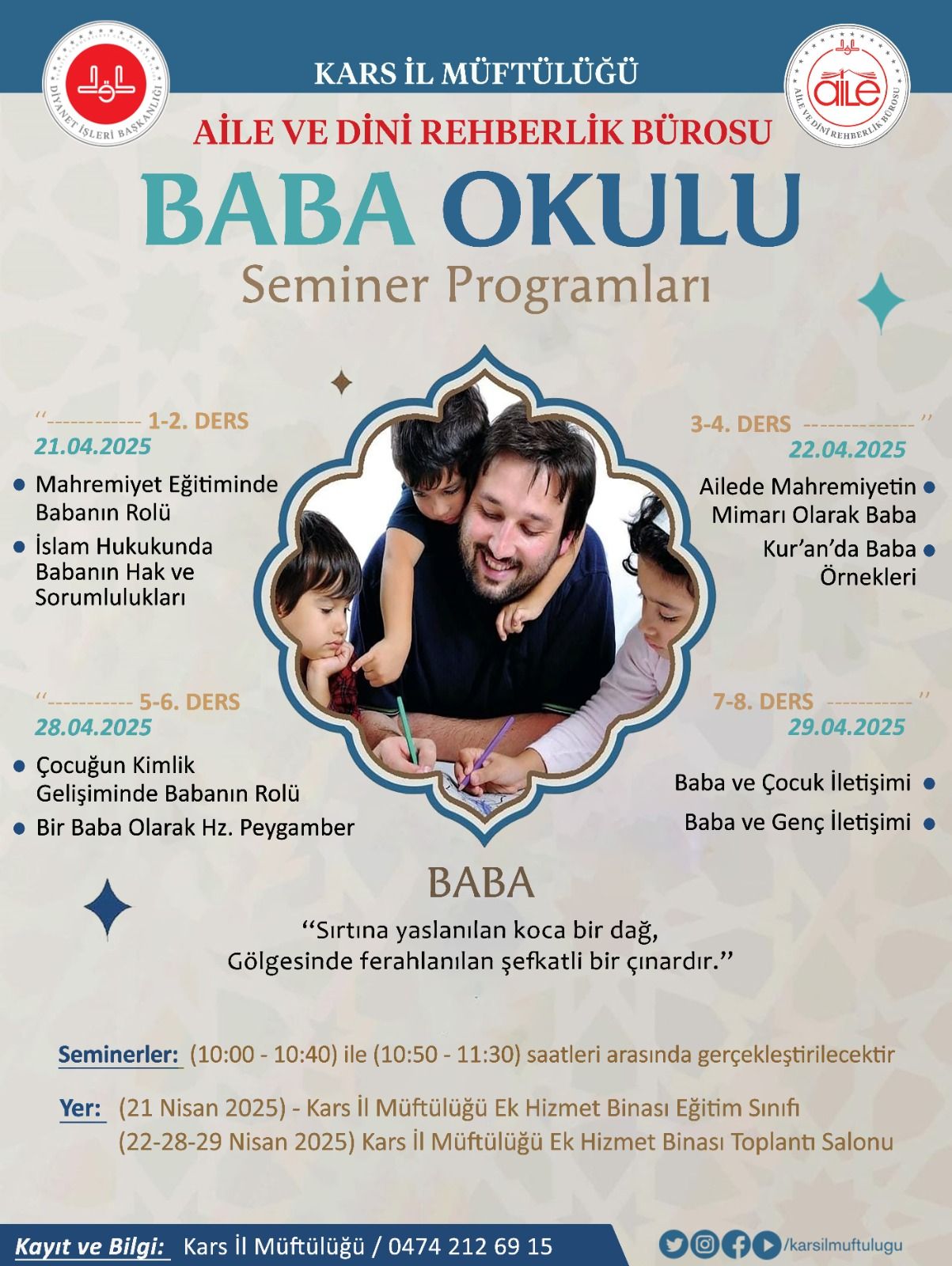 Kars İl Müftüsü Yavuz Yıldız, tüm babaları ve baba adaylarını seminerlere katılmaya davet etti.