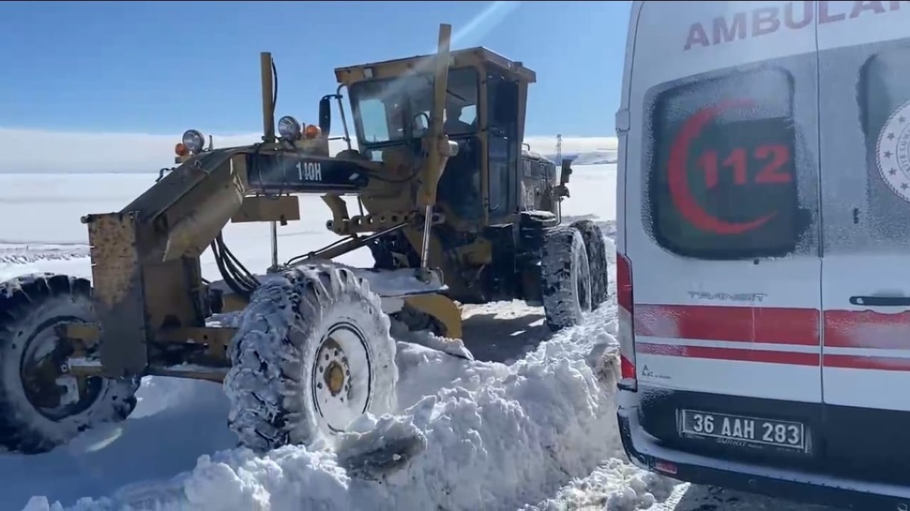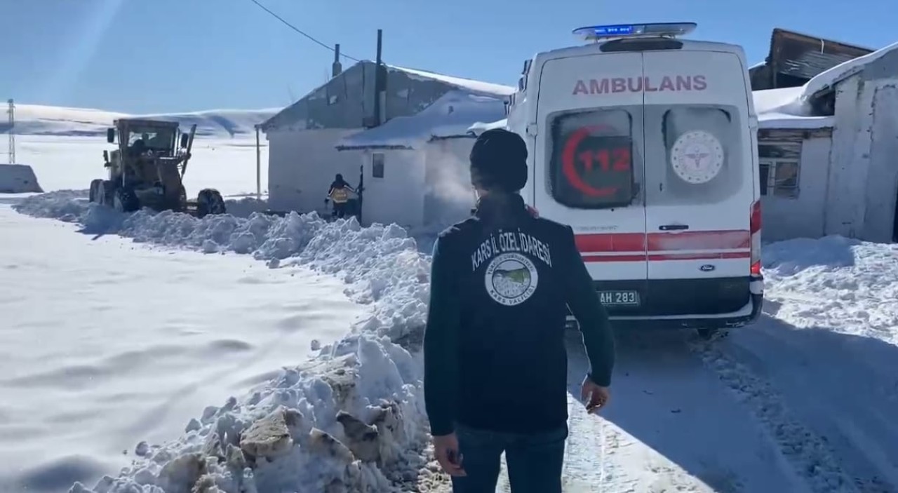 Kar ve tipi nedeniyle ilerlemekte güçlük çeken ambulansa ekipler yol boyunca eşlik etti. Evinden alınan hasta, sağlık ekiplerince Selim Devlet Hastanesi’ne kaldırıldı.