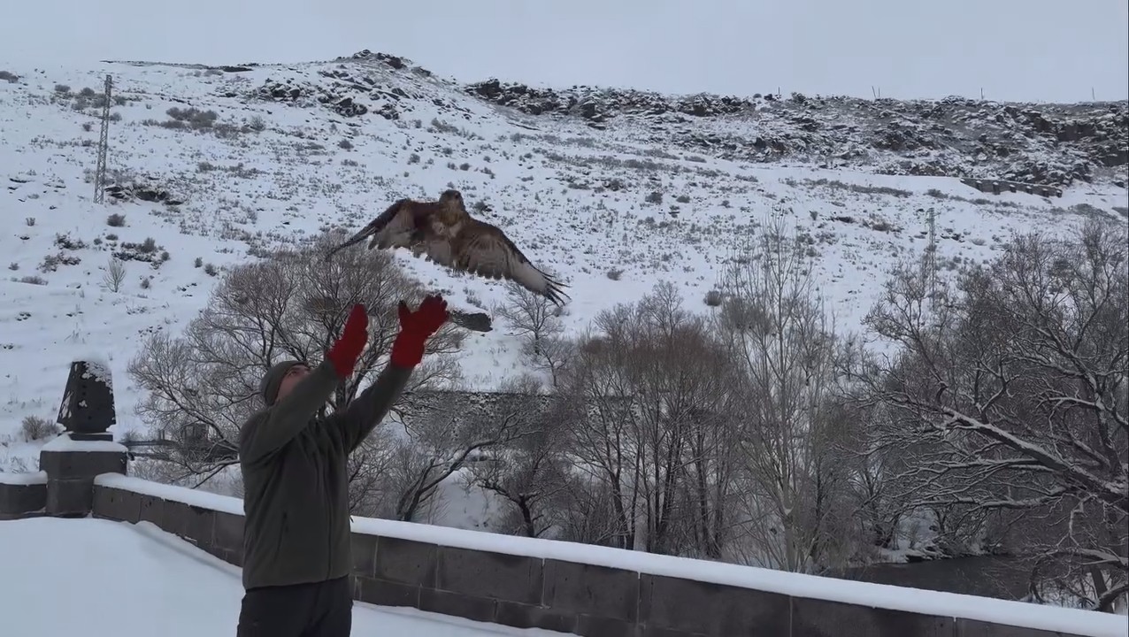 Kars'ta, tedavileri tamamlanan yırtıcı kuşlar özgürlüğe kanat çırptı. Doğa Koruma ve Milli Parklar (DKMP) Genel Müdürü Kadir Çokçetin tarafından doğaya bırakılan şahinlerin o anları kameralara yansıdı.