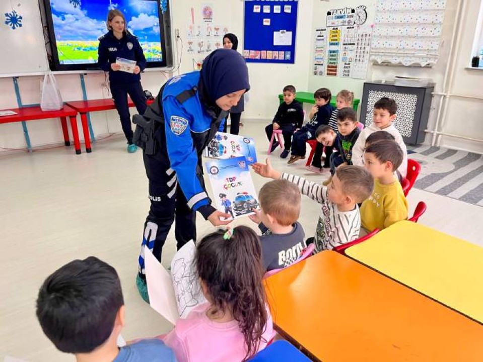 Okul ziyareti sırasında, polis maskotu eşliğinde öğrencilere temel güvenlik kuralları anlatıldı. Ayrıca, meraklı miniklere polislik mesleği hakkında bilgiler verildi.