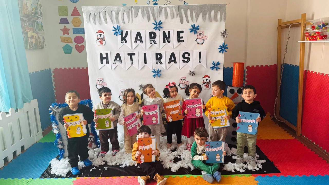 Kars'ta okul öncesi eğitim veren Kreş ve Gündüz Bakım Evi’nde 2025-2026 eğitim-öğretim yılının ilk yarısı coşkuyla tamamlandı. Henüz eğitim hayatının başında olan minik öğrenciler, öğretmenlerinin elinden ilk karnelerini ve gelişim raporlarını aldı.