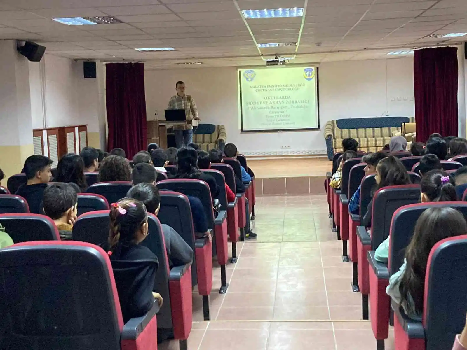 Malatya İl Emniyet Müdürlüğü ekipleri asayiş ve güvenlik ekseninde yürüttüğü çalışmaların yanı sıra sosyal sorumluluk projeleriyle de vatandaşlara dokunuyor. Malatya İl Emniyet Müdürlüğü Çocuk Şube Müdürlüğü ekipleri tarafından hayata geçirilen “Akranımla barışığım zorbalığa karşıyım” projesiyle kent genelinde faaliyet gösteren 28 ortaöğretim kurumunda öğrenim gören 3 bin 230 öğrenciye yönelik seminer düzenlendi.