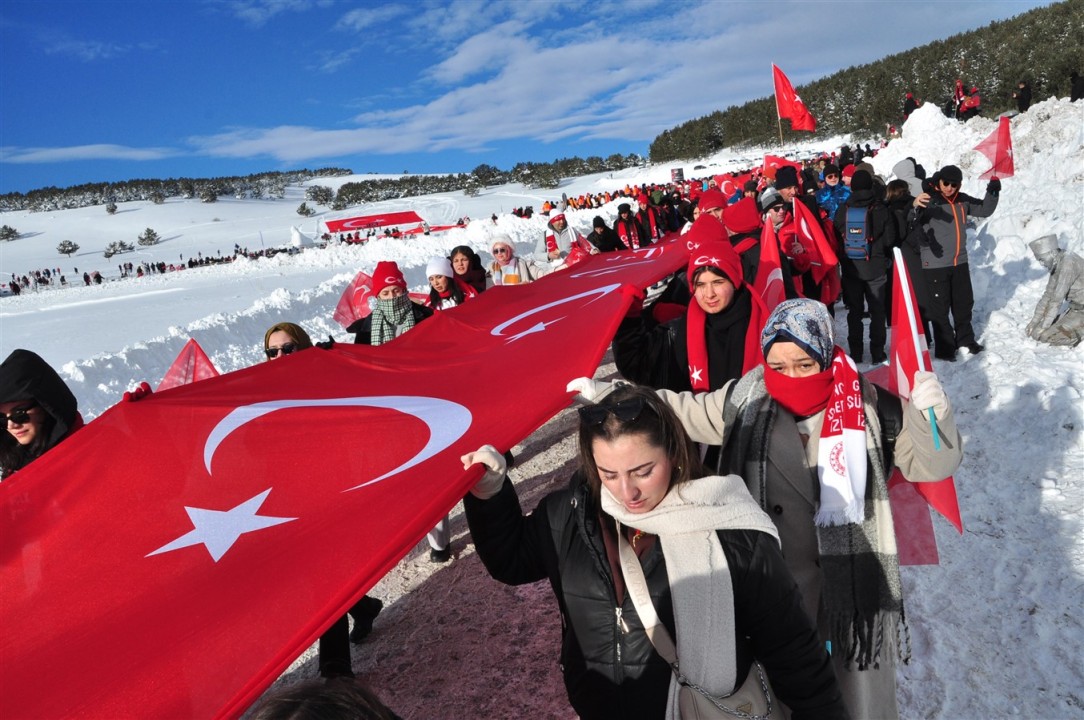 Okunan duanın ardından önde Atatürk posteri ve Türk bayrağı olmak üzere binlerce kişi yürüyüşe başladı. Aile ve Sosyal Hizmetler Bakanı Mahinur Özdemir Göktaş, Gençlik ve Spor Bakanı Osman Aşkın Bak, Vali Ziya Polat, Milletvekili Adem Çalkın ve protokol üyelerinin de katıldığı yürüyüş dondurucu soğuk altında gerçekleştirildi.