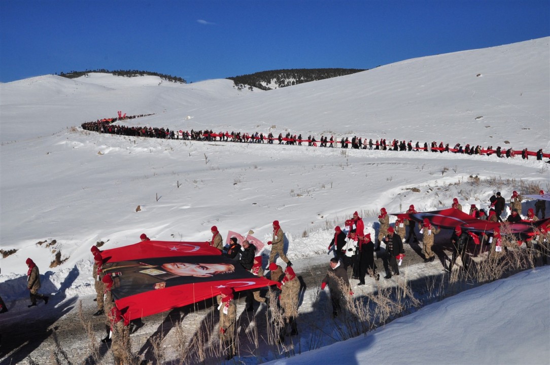 Yürüyüşe katılan Güler Aslan (70), “Şehitlerimize canımız feda. Büyüklerimizin anlattığına göre dondurucu soğuk ve tipi nedeniyle Mehmetçiğimiz bu topraklarda şehit oldu. Biz de onları yad ediyoruz” dedi.