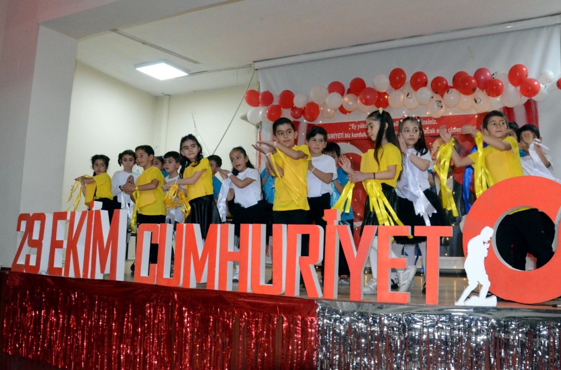 Saygı duruşunda bulunulması ve İstiklal Marşı’nın okunmasıyla başlayan etkinlikte, minik öğrenciler tarafından Cumhuriyetin anlam ve önemini anlatan şiirler okundu. Öğrencilerin hazırladığı oratoryo, bayraklı dans gösterileri ve temsili canlandırmalar izleyenlerden büyük alkış aldı.