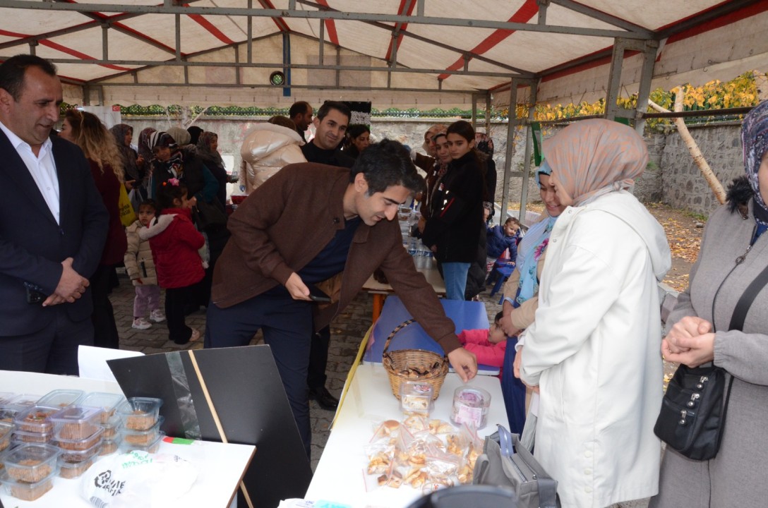Sarıkamış 29 Eylül İlkokulu bahçesinde kurulan stantta kadınların evlerinde yaptığı kek, pasta, yemek gibi birçok ürün satışa sunuldu.