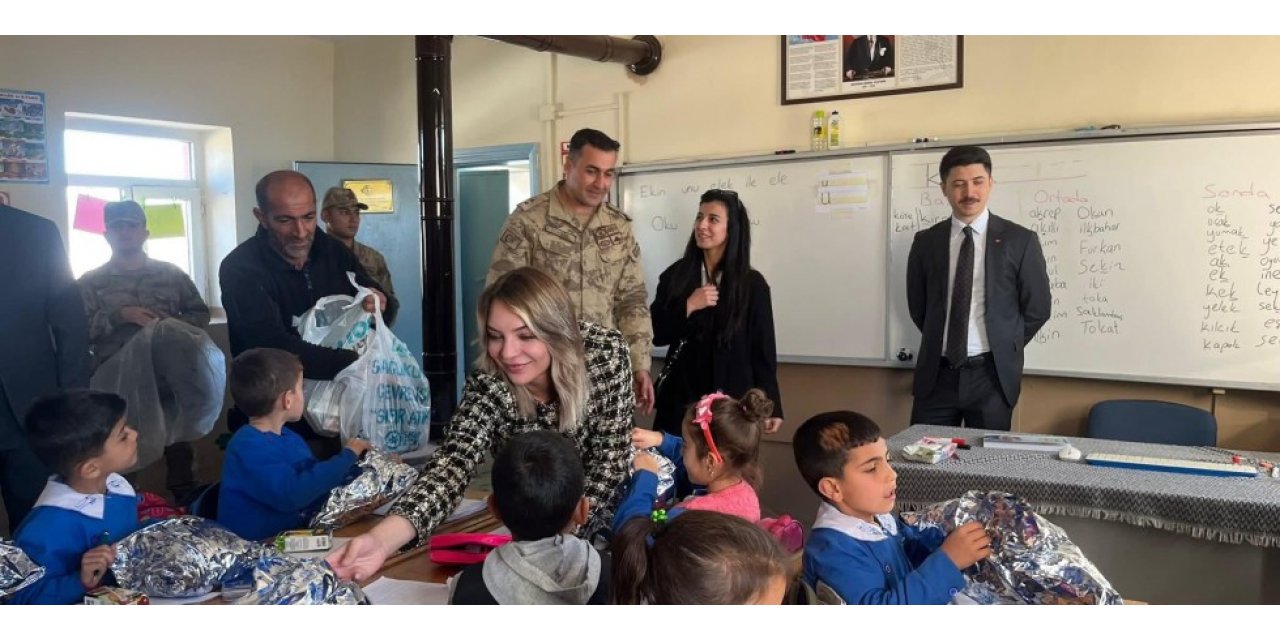 Minik yürekler, Cumhuriyet Savcısı Feride Irmak Kılınç ve Psikolog Rukiye Uyan'ın ördüğü sıcacık atkılarla sevindi. Öğrenciler, Kaymakam Kahraman ve beraberindeki heyetin ziyaretiyle de moral buldu.