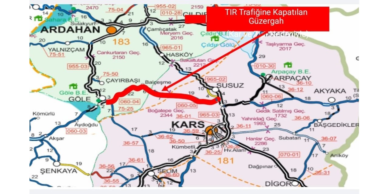 Yetkililerden alınan bilgilere göre, Susuz-Boğatepe-Göle devlet yolunun, hava şartlarının iyileşmesi ve kar temizleme çalışmalarının tamamlanmasının ardından en kısa sürede yeniden tır trafiğine açılması bekleniyor. Sürücülerin güncel yol durumu bilgisi almadan yola çıkmamaları önemle duyurulur.